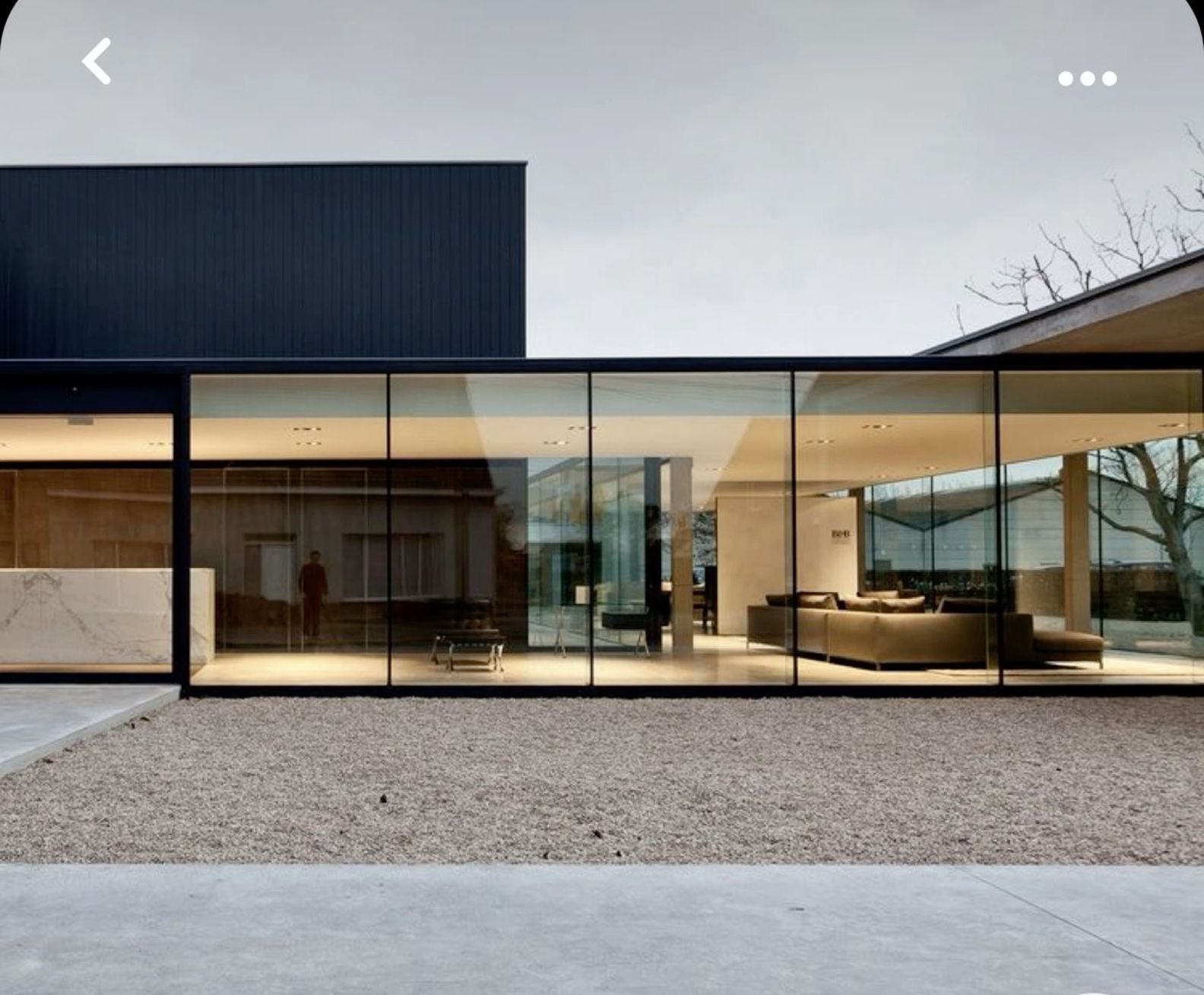 Charcoal Clad Modern Pavilion With Expansive Glass Walls And Concrete Base